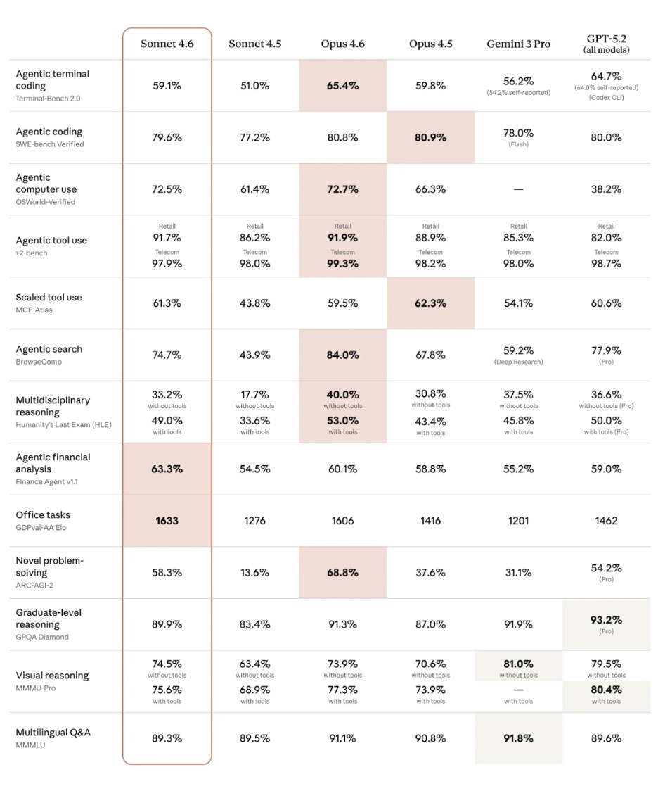 从公开数据来看,Sonnet 4.6的关键词是“能力下沉