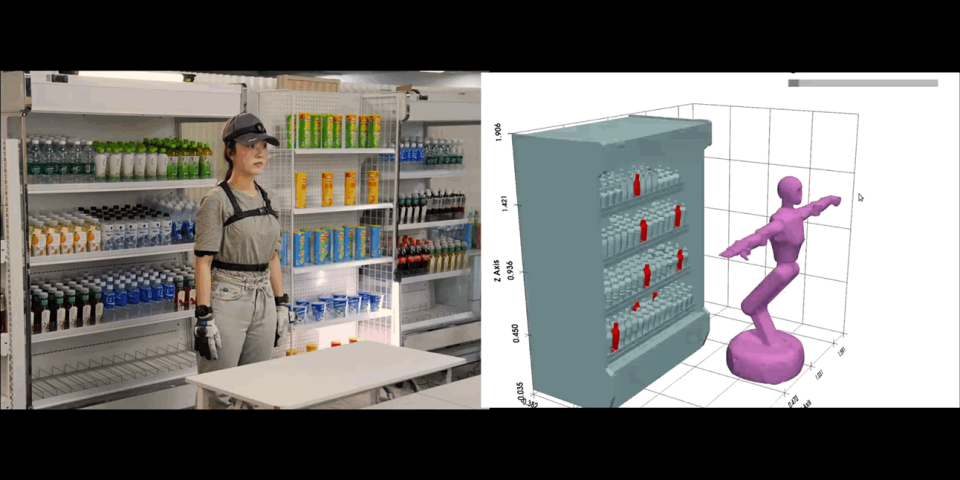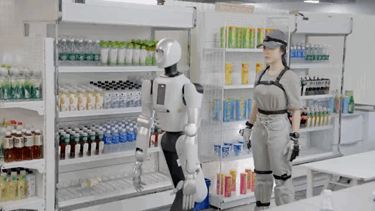这要求机器人必须同时处理三重难题:一是通过大脑精准判断水瓶在货架上的位置;二是用拟人的动作伸手拿到水瓶,并过程中不能碰倒周围的商品;三是灵巧操作,水瓶上半身较细、下半身较粗,且通常被紧密卡位,直接平移取出极易卡顿。