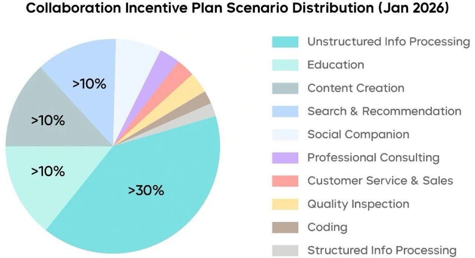 中的调用情况,发现最高比例的需求为处理混杂图表、文档等非结构化信息的知识内容,然而企业往往要求模型先做“读得多、想得多”的任务,再进入复杂且专业的流程型工作,对模型的长内容理解和多步任务执行能力要求越来越高。