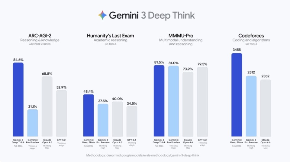 2月13日,谷歌发布Gemini 3 Deep Think