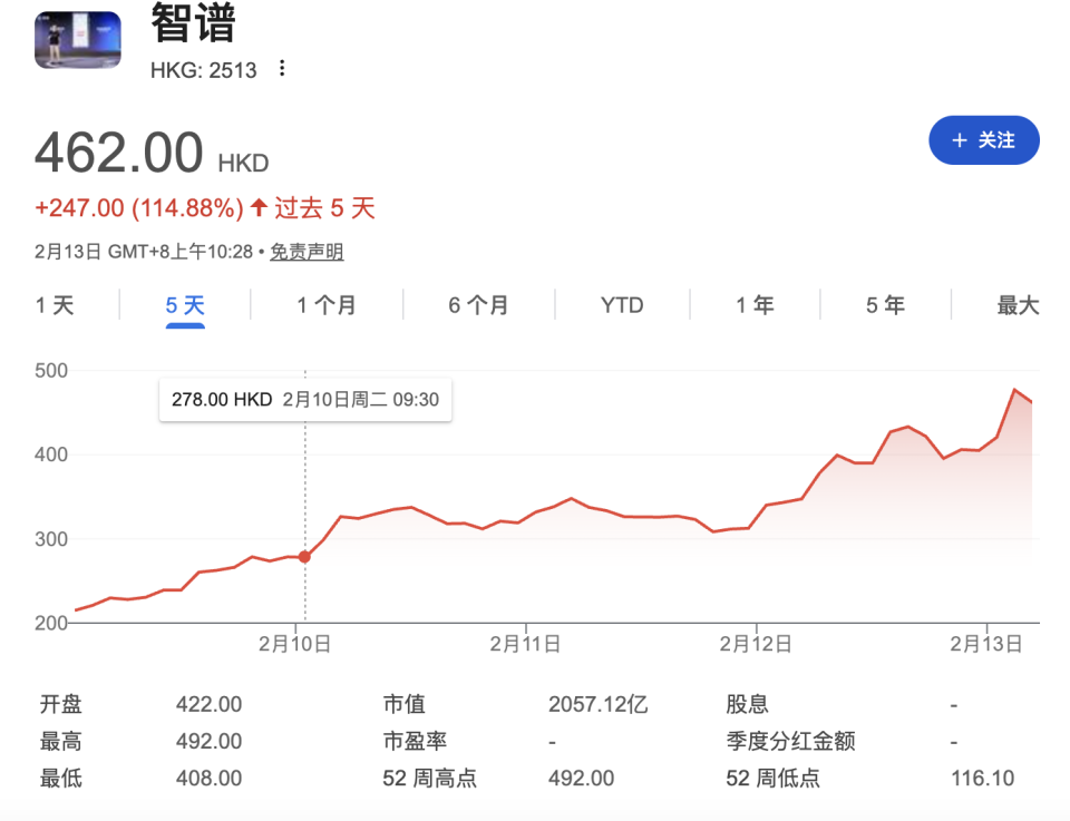 本次,智谱学习硅谷前沿模型,先期在OpenRouter上线名为Pony Alpha的测试版本,整体期待和热度延续较长。截止发稿,近五日来,智谱股价已上涨114.88%。