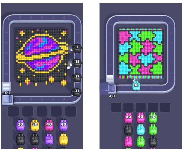 这一阶段的代表不止《Hexa Sort》,也包括后来的《Pixel Flow》。它们的共通点在于:
