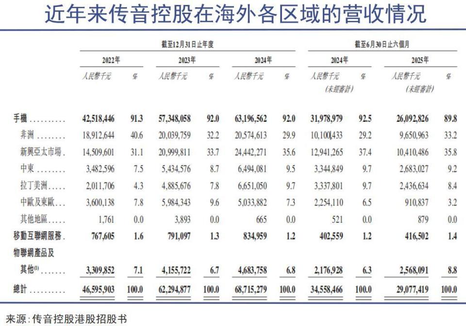 传音控股并非没有积极寻找非洲以外的第二曲线。相反,其成功开辟了第二战场。招股书显示,从2023年开始,传音控股在新兴亚太市场的营收就已经超过了传统的非洲市场。