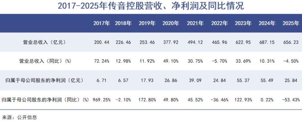 进入2025年,情况变得更加糟糕,传音控股的业绩直接陷入负增长,并即将迎来上市以来最差年报。