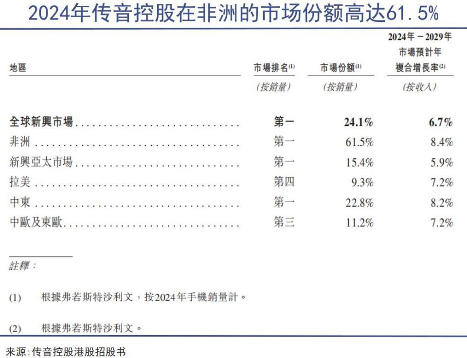 到2018年,传音控股超越长期占据非洲市场霸主地位的三星,成为非洲第一大手机品牌。根据传音控股港股招股书,2024年,其在非洲的市场份额已经高达61.5%。